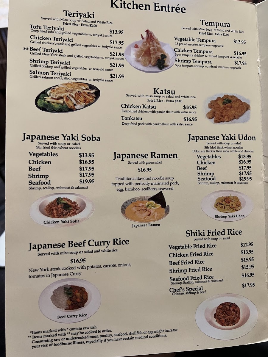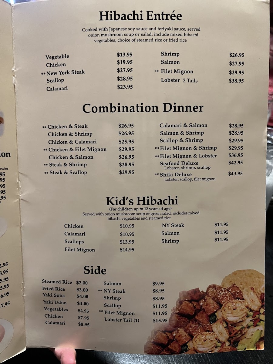 Welcome to Shiki Sushi & Grill, a hidden gem located in Kennewick, Washington, where the culinary arts of Japan meet a warm, inviting atmosphere. Our menu beautifully balances a variety of flavors with options like succulent Hibachi dishes featuring tender filet mignon and flavorful side calamari, each enticingly priced. Dive into our appetizers such as Dumpling Soup, showcasing delicate pork dumplings in a clear broth, or indulge in a seafood soup bursting with freshness.